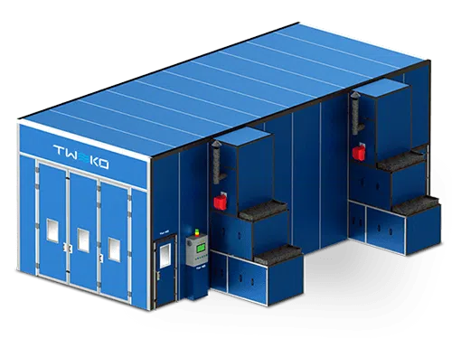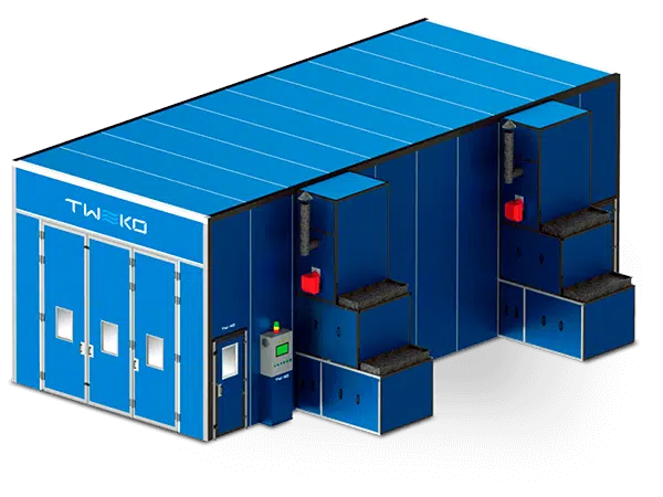 Продуктивність — Фарбувально-сушильні камери, абразивноструминні камери та пости підготовки до фарбування від TWEKO - значно збільшують ефективність роботи малярної ділянки, дотримуючись усіх умов з питань безпеки малярів і тонкощів технологічних процесів фарбування, сушіння, підготовки та постобробки виробів.