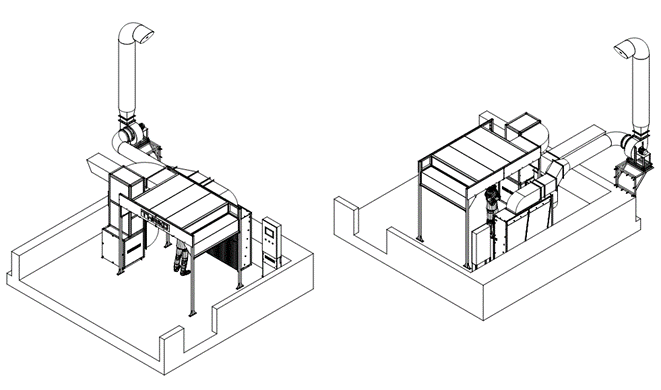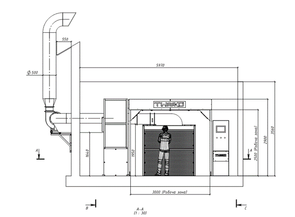 - Забезпечити організований припливно-витяжний повітрообмін з продуктивністю до 6000 м³/год для видалення фарбового аерозолю