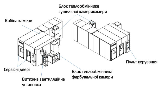 - організувати фарбувальну камеру з контрольованим повітрообміном (до 8000 м³/год);