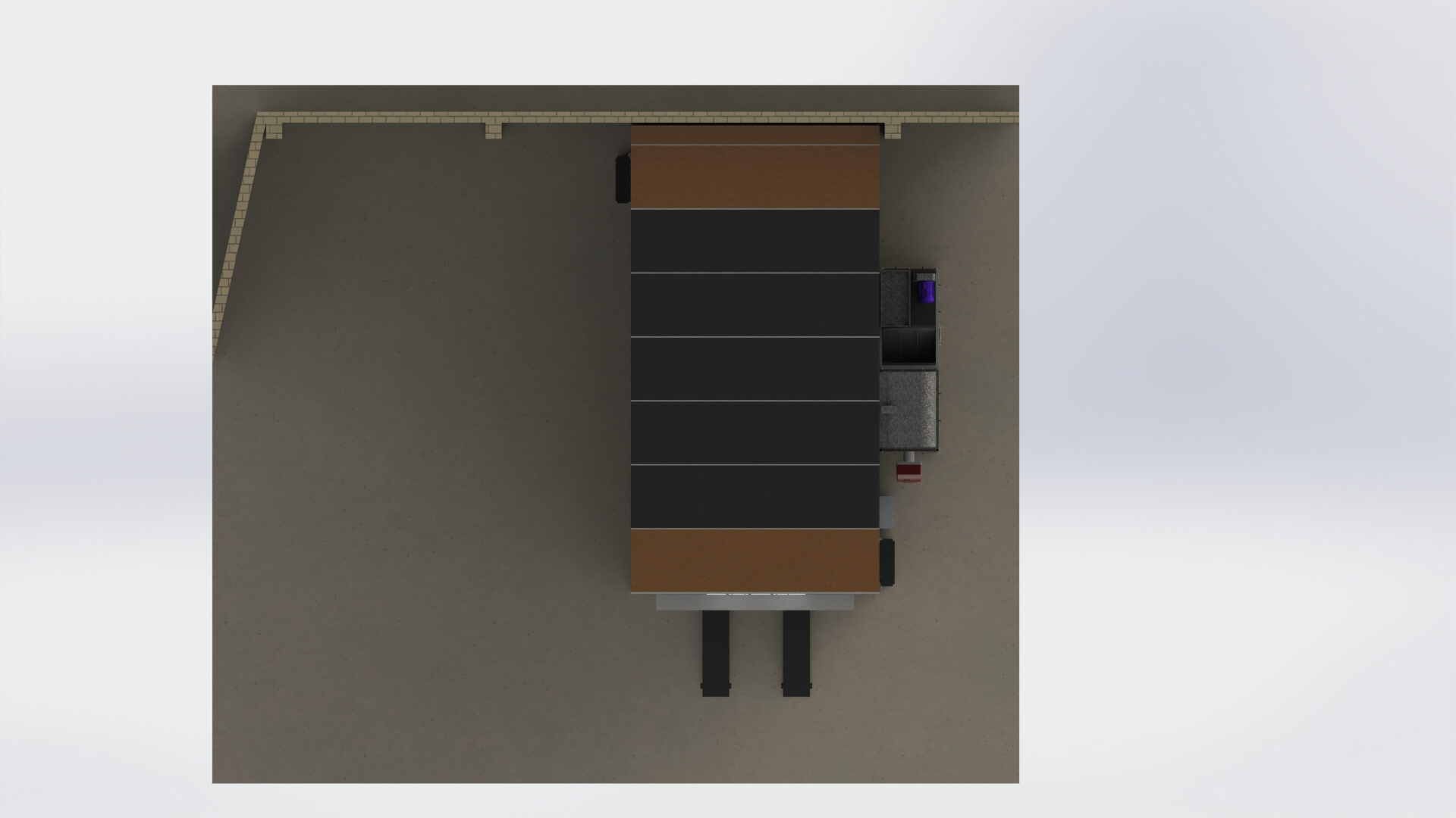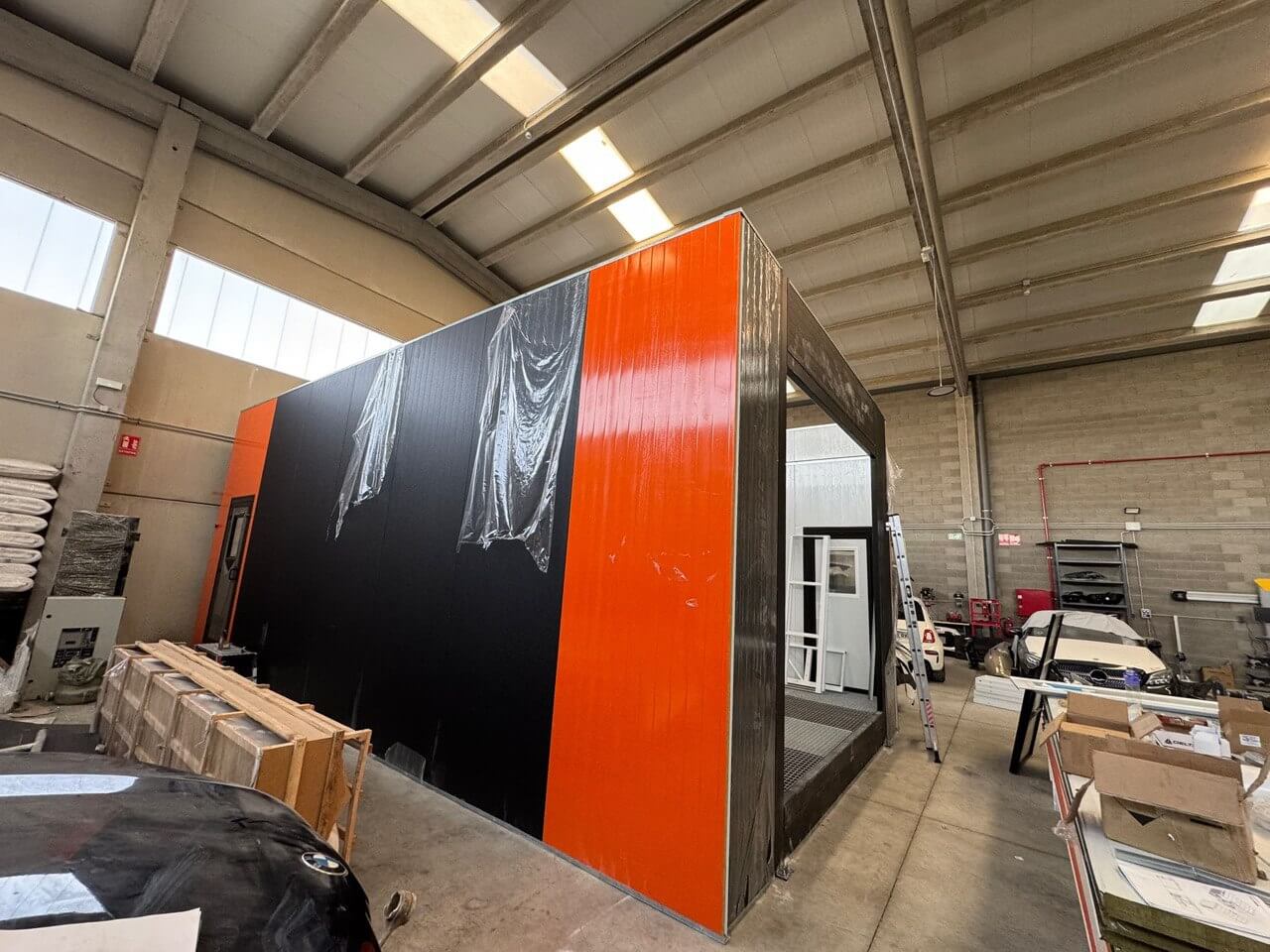 Для реалізації задачі RIOMAX GRUPO було обрано фарбувально-сушильну камеру серії AKFS моделі AKFS-S-9 із сухою фільтрацією. З урахуванням обмежень виробничого приміщення застосовано індивідуальну компоновку: камера встановлена впритул до стіни з боковим розміщенням термовентиляційного блоку. Це дозволило оптимізувати використання площі та скоротити довжину повітроводів.