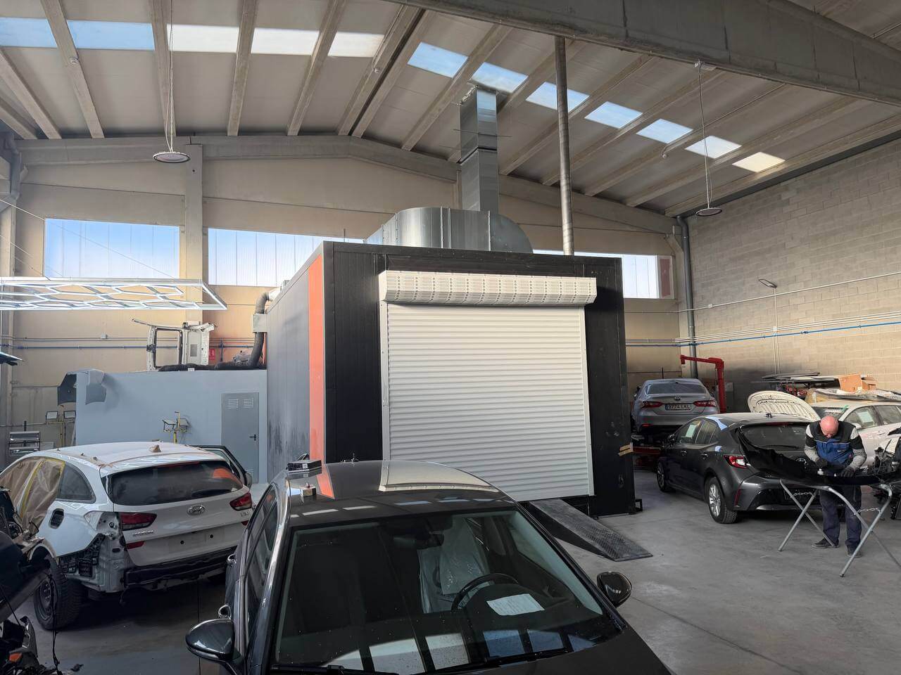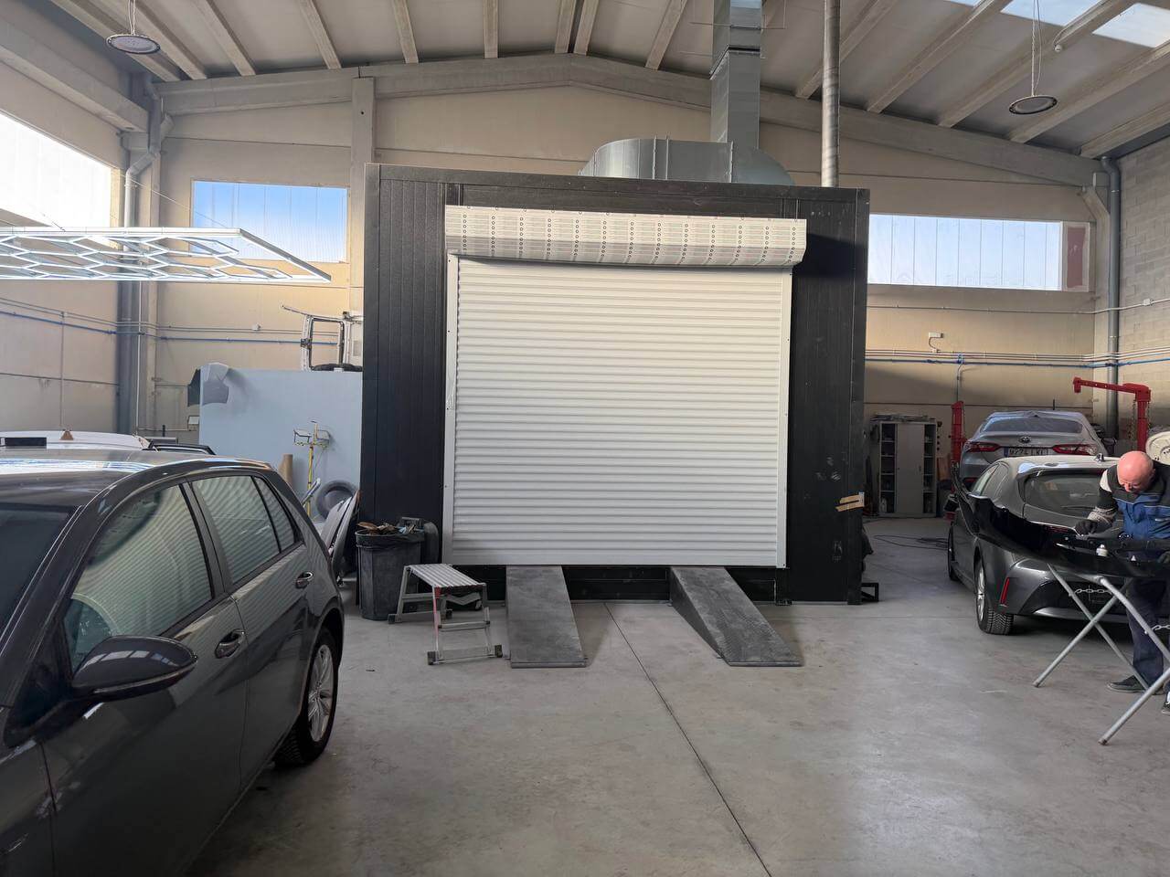 Система вентиляції з продуктивністю до 27 000 м³/год забезпечує стабільний повітрообмін та підтримання надлишкового тиску 10–30 Па, що знижує ризик потрапляння пилу в зону фарбування. - Термічна підготовка: