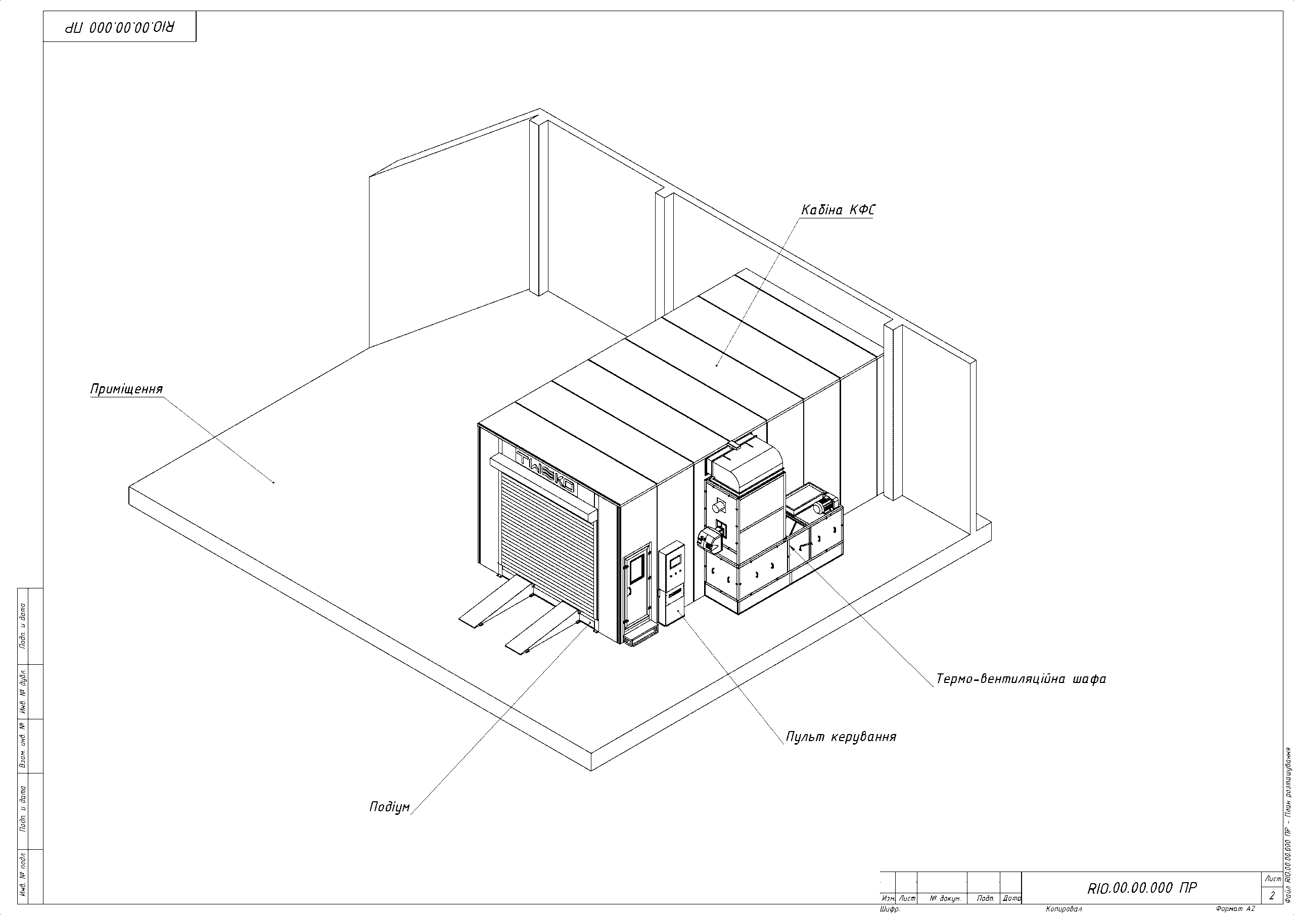 Додатково проєкт передбачає використання ролетних (roll-up) воріт та винесеного пульта керування, що забезпечує зручний доступ оператора та інтеграцію обладнання в існуючу виробничу інфраструктуру.