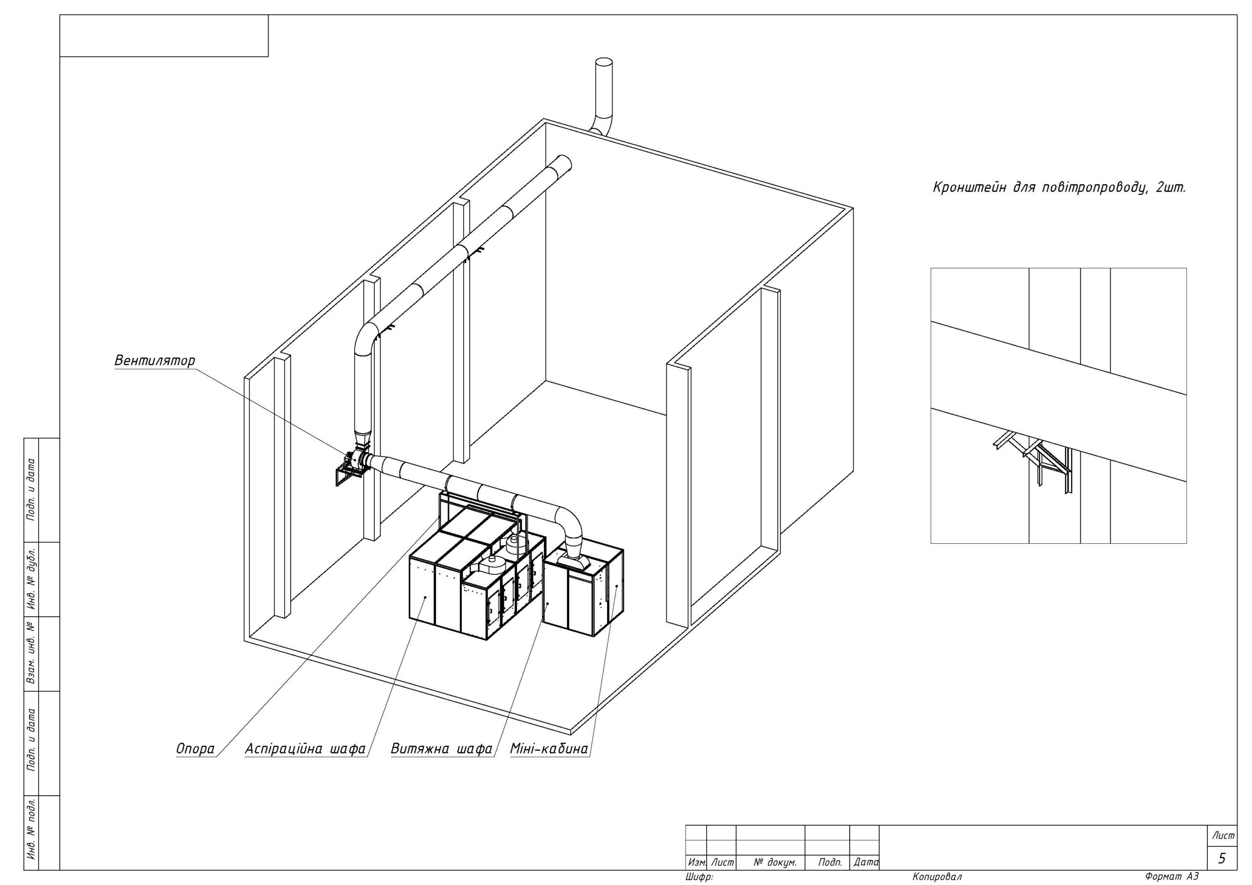 У процесі проєктування виконано детальну розробку конструкторської документації, включно з корпусами обладнання, системами фільтрації, повітропроводами, кріпленнями, освітленням та допоміжними елементами.