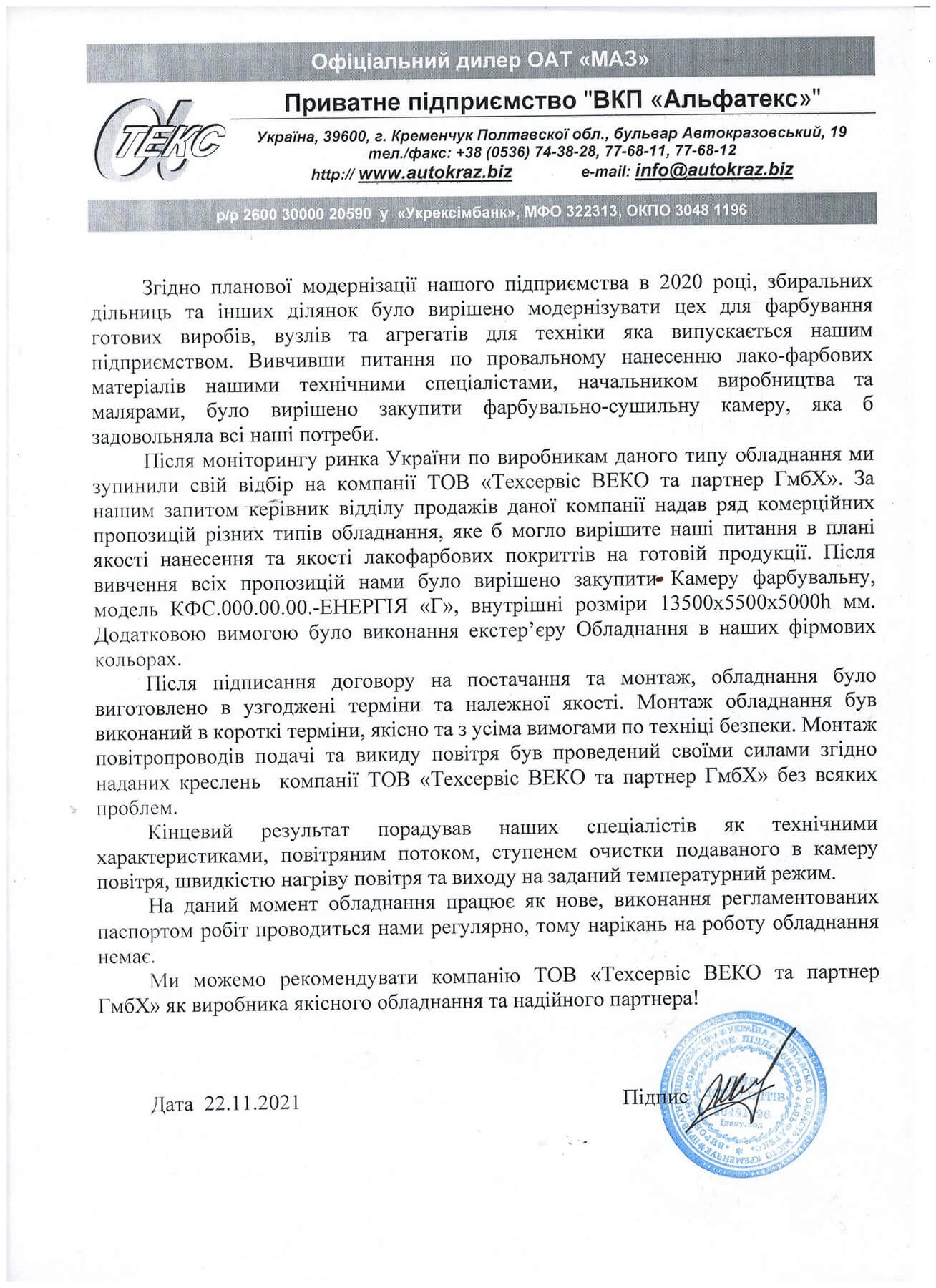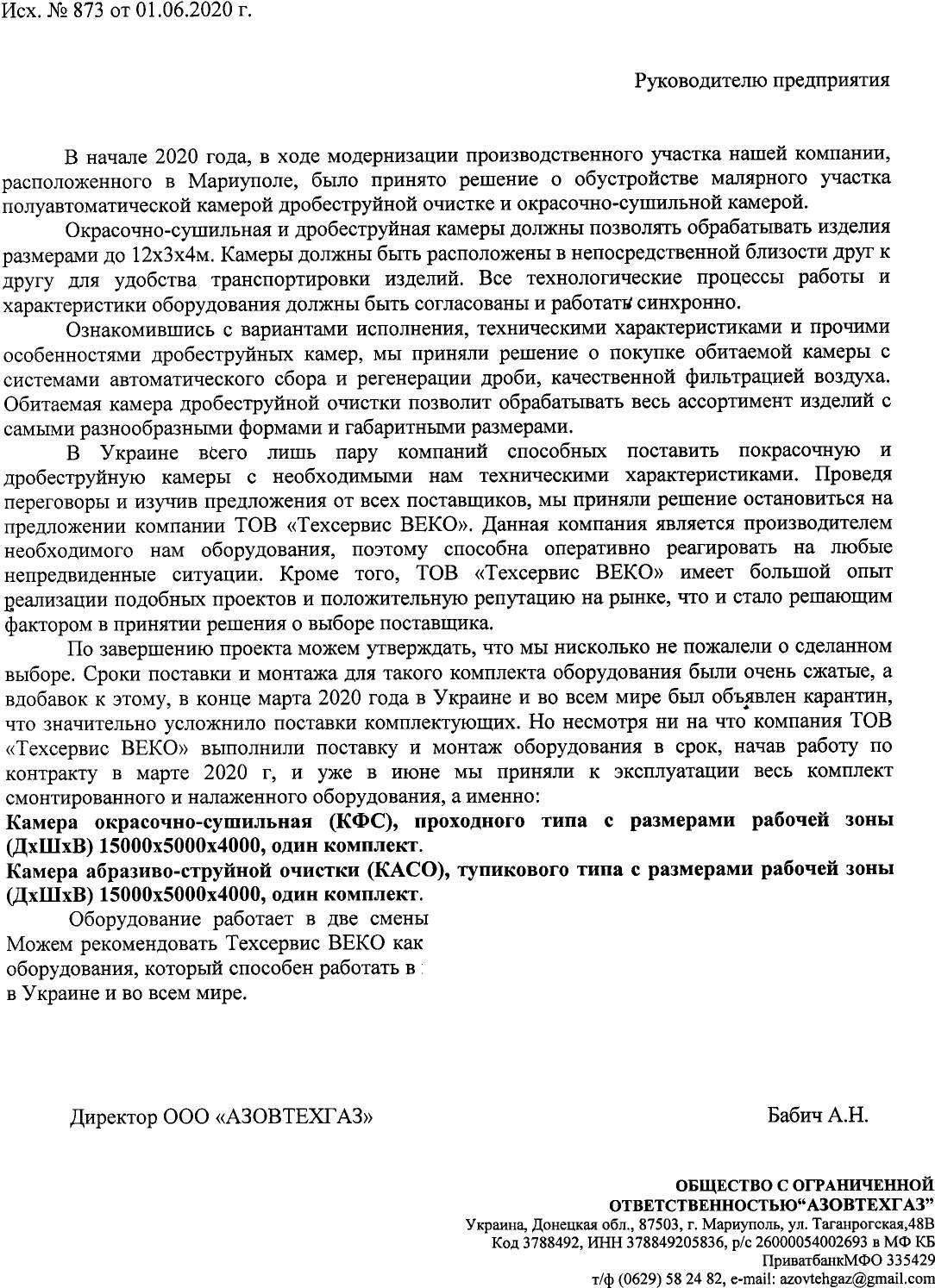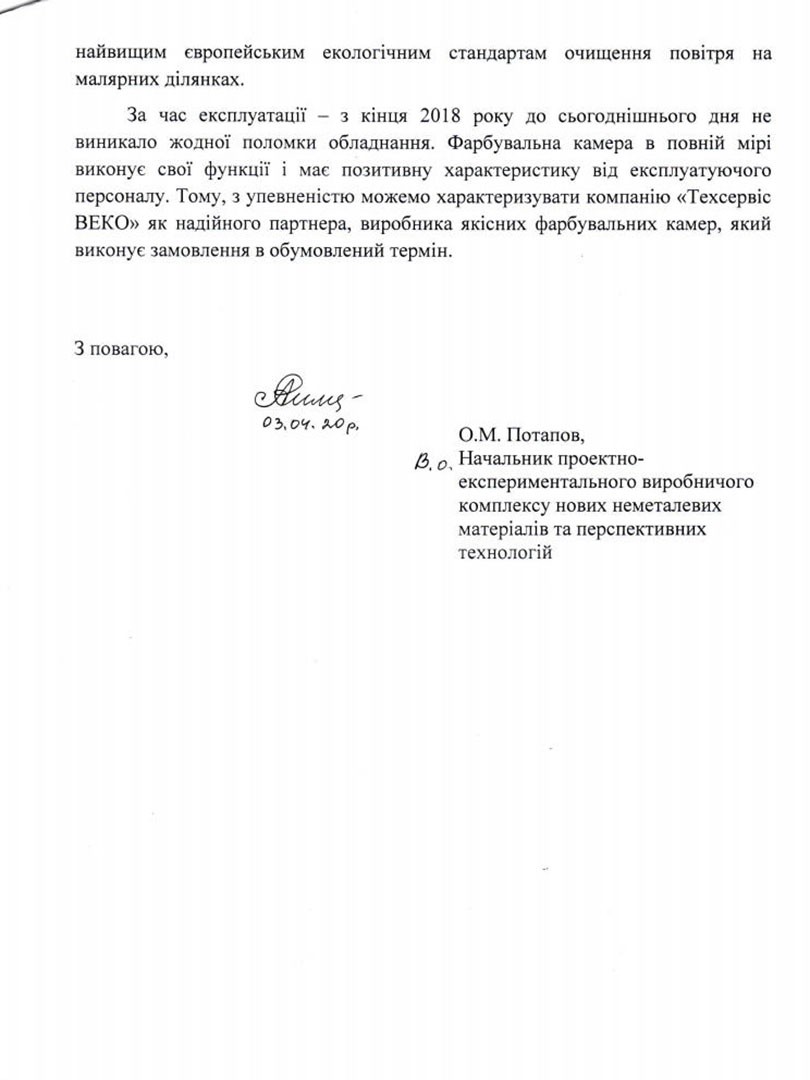 Довольный клиент – показатель хорошей выполненной работы, а благодарный довольный клиент – лучшей выполненной работы. Нам доверяют увеличение эффективности малярного участка. Спасибо всем, за обратную связь!Генеральный Директор: Свидро Анатолий Алексеевич