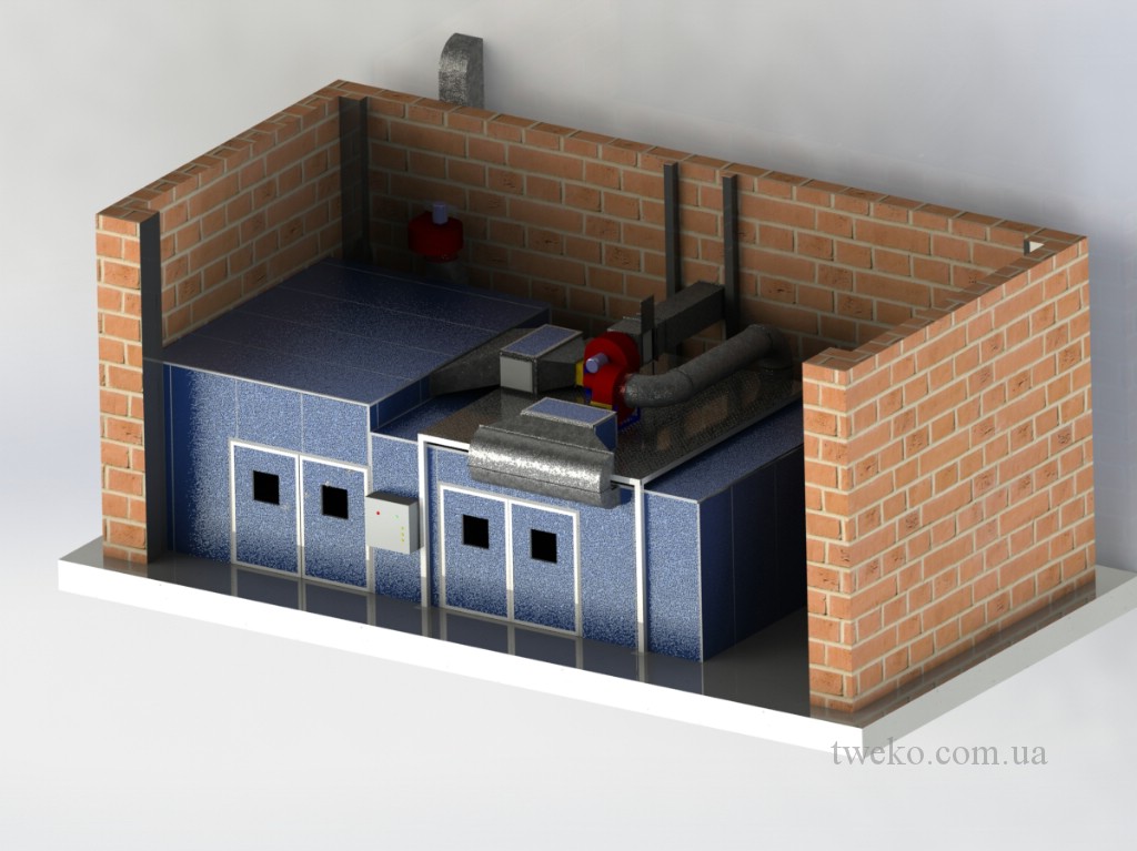 - вентилятор с электродвигателем менее мощные, чем в аналогичной по размерам окрасочной камере, так как кратности обмена воздуха в сушильной камере достаточно 50 раз/час;