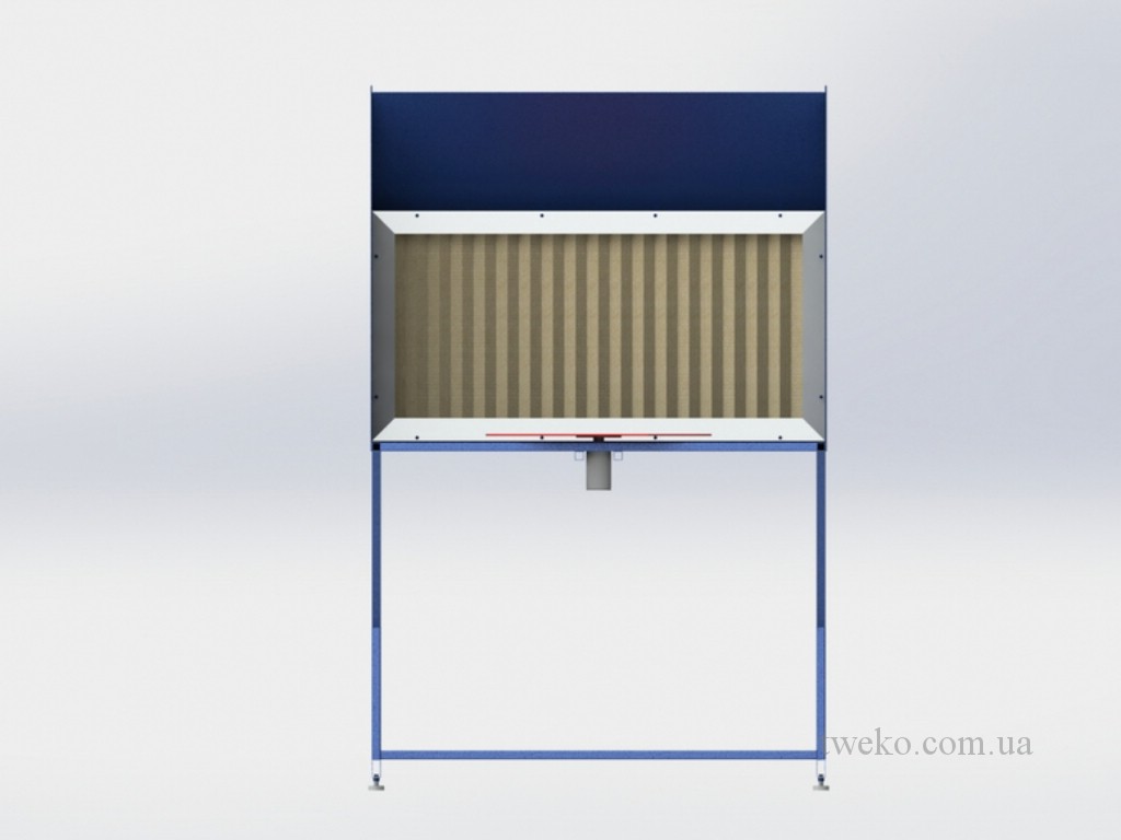 - Металлический каркас-стенд, выполненный из металлических уголков обшитых листом. Он имеет слой защитного полимерного покрытия и служит каркасом для фильтровальных кассет выброса и вентилятора;