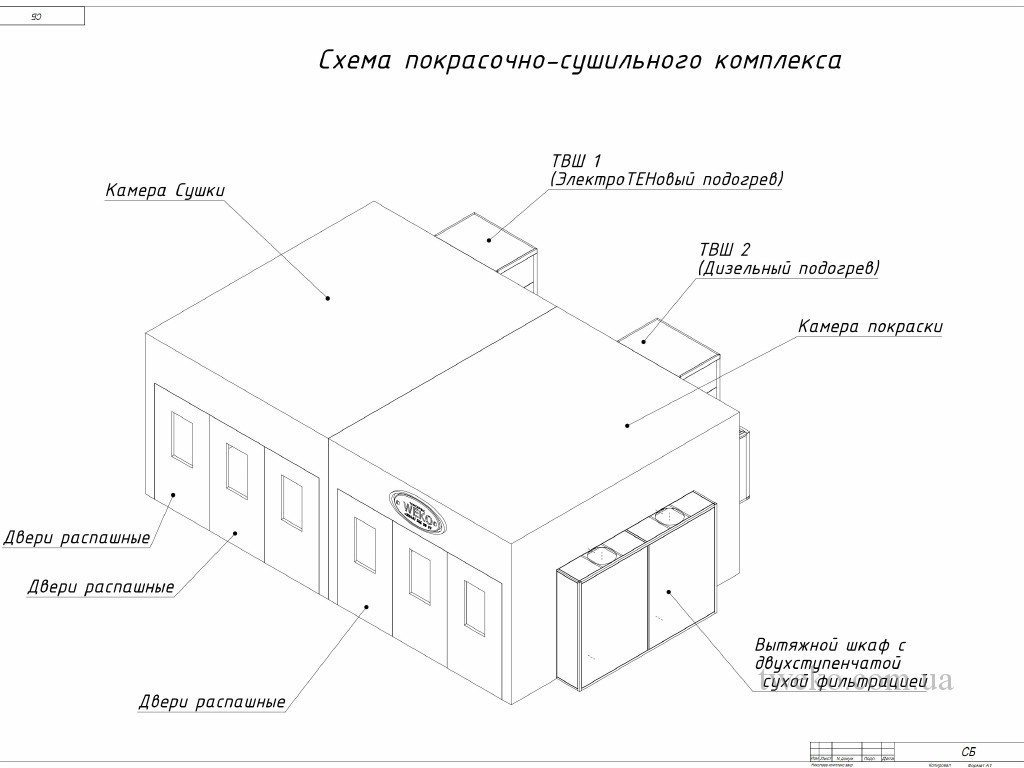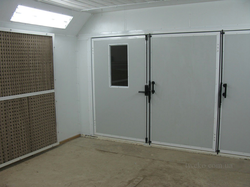 Малярный комплекс для яхтостроительной верфи был спроектирован и изготовлен по заказу компании 5 Океан, которая занимается производством премиальных Яхт в г. Николаев. Данный малярный комплекс состоит из камеры покраски и камеры сушки, каждая из которой имеет внутренние размеры 5х4х2,4 м. Камеры объединены одними смежными откатными воротами. Также, они имеют свои собственные входные распашные ворота. Нагрев воздуха в комплексе комбинированный — электроэнергия для камеры сушки и дизельное топливо для камеры покраски. Благодаря смежной герметичной кабине комплекс обеспечивает беспылевое внутреннее пространство с избыточным давлением. Это позволяет создавать безупречное лакокрасочное покрытие на премиальных предметах интерьера дорогих яхт.