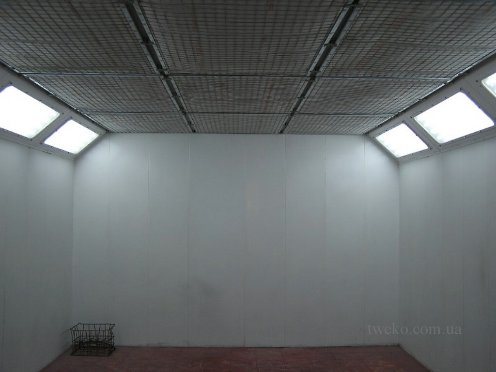 - Покрасочная камера. Камера с внутренними размерами 7×4×2,7 м, установленная на бетонном основании со встроенными воздуховодами, обеспечивает достаточное пространство для покраски легковых автомобилей.