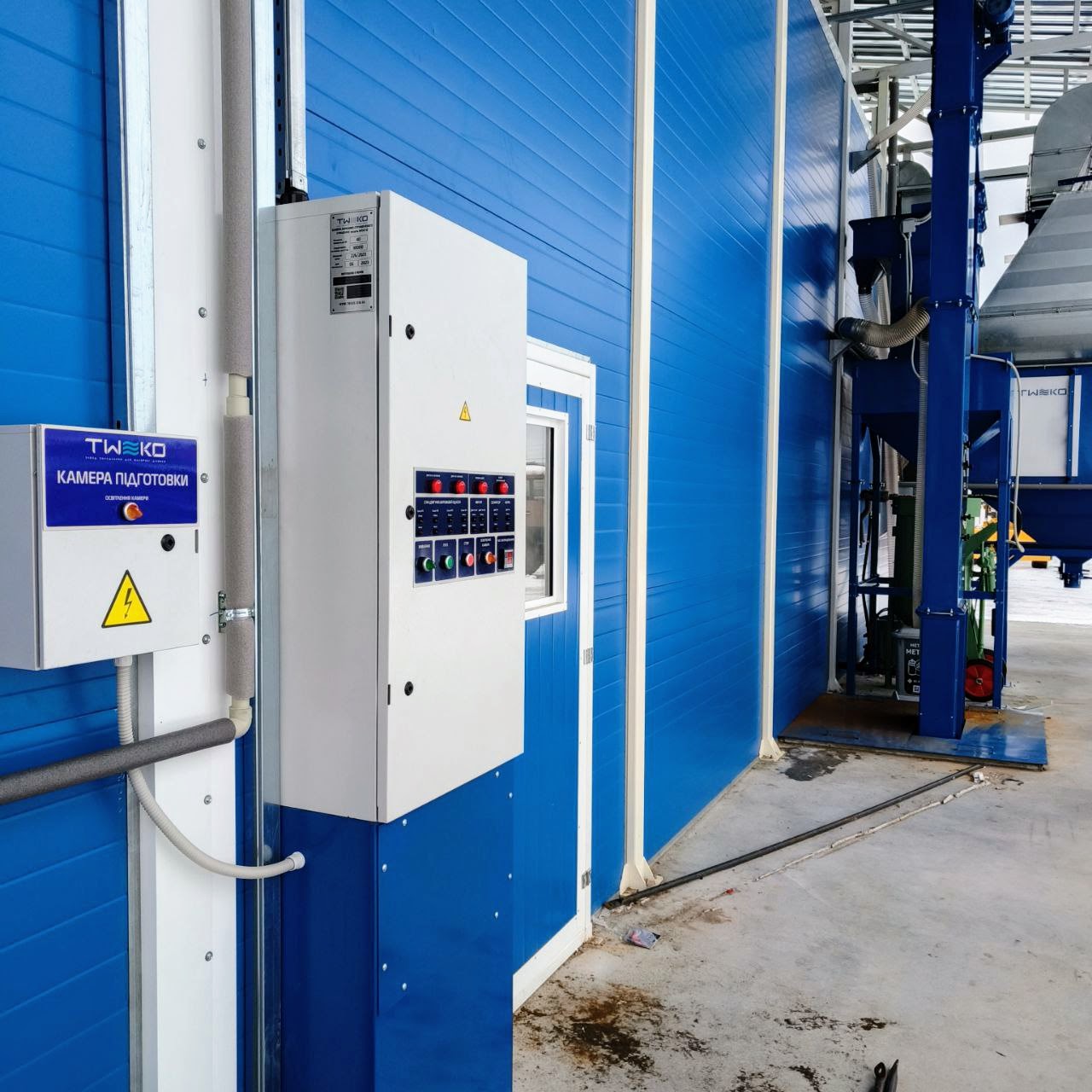 Между камерой абразивоструйной очистки и окрасочно-сушильным комплексом предусмотрена вентиляционная камера-тамбур, обеспечивающая технологическое и воздушное разделение этапов обработки.