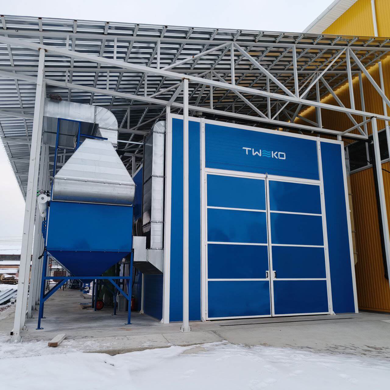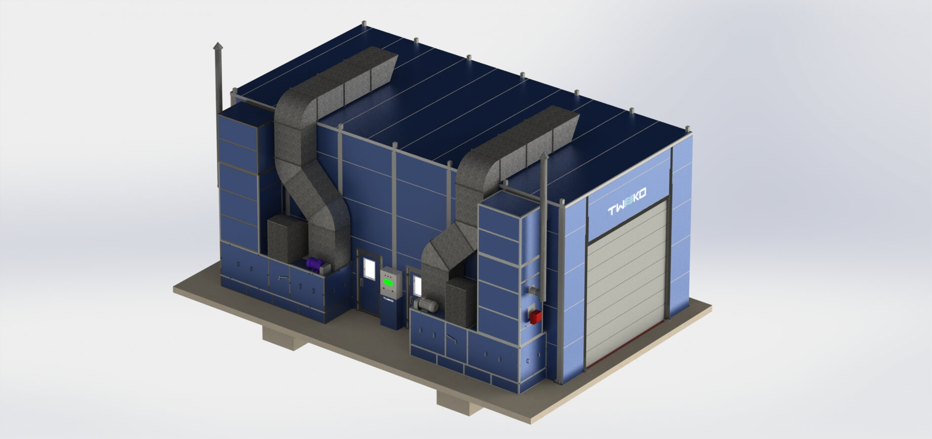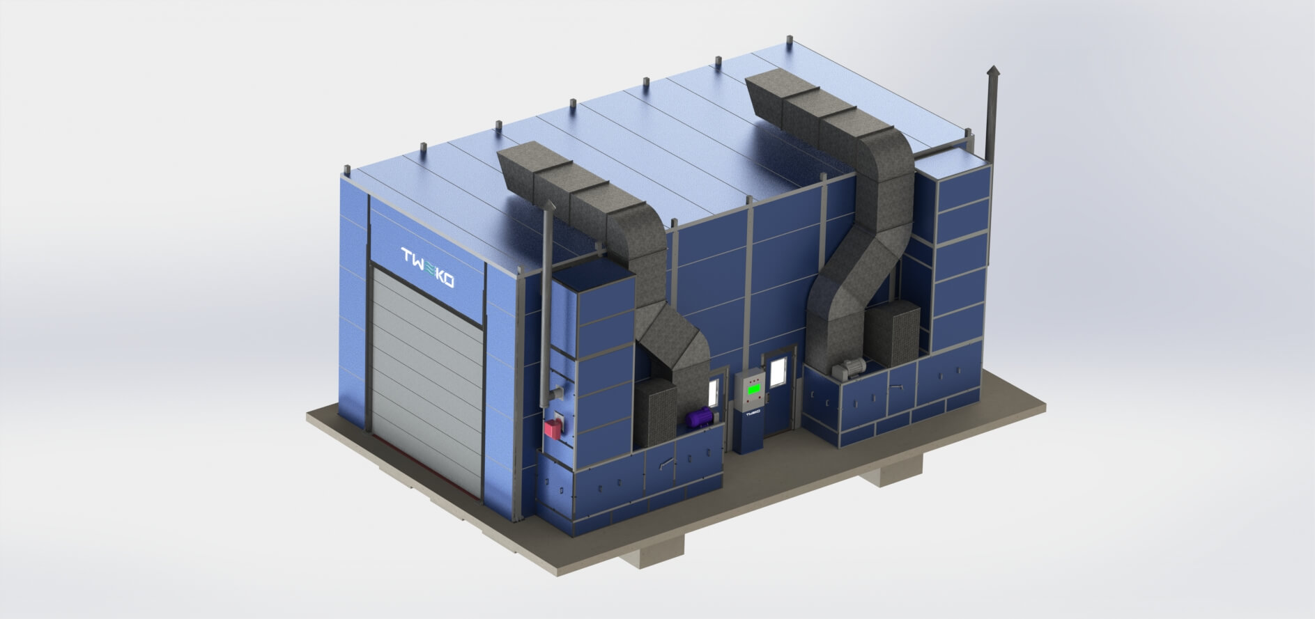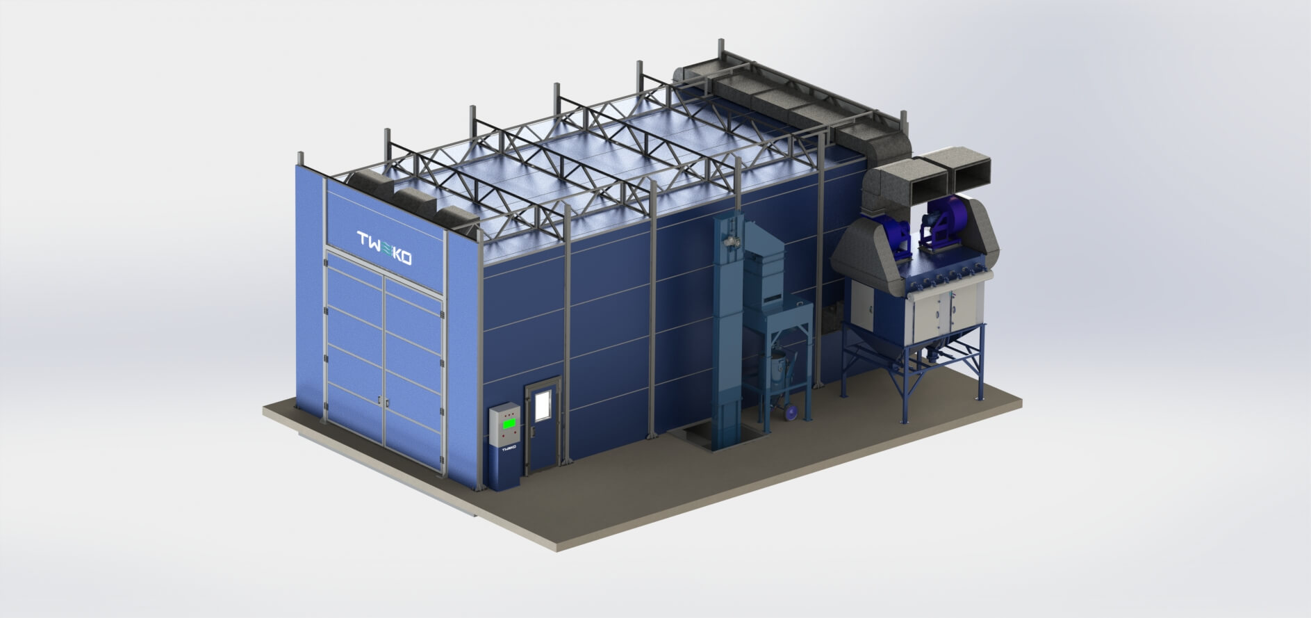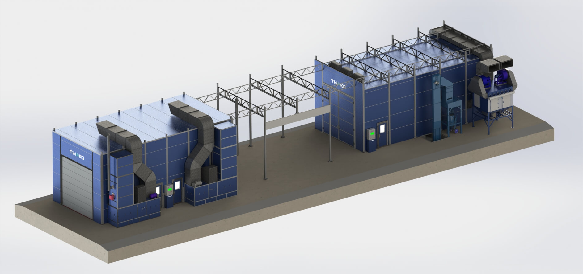 Специалистами TWEKO было разработано комплексное инженерное решение для организации технологического участка подготовки поверхности и окраски изделий в рамках одного производственного комплекса.