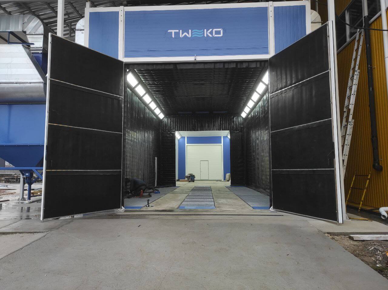Компания TWEKO выполнила полный комплекс работ по проектированию, изготовлению и интеграции технологического участка подготовки поверхности и окрасочно-сушильной обработки изделий специальной техники для сервисного предприятия группы TDC.