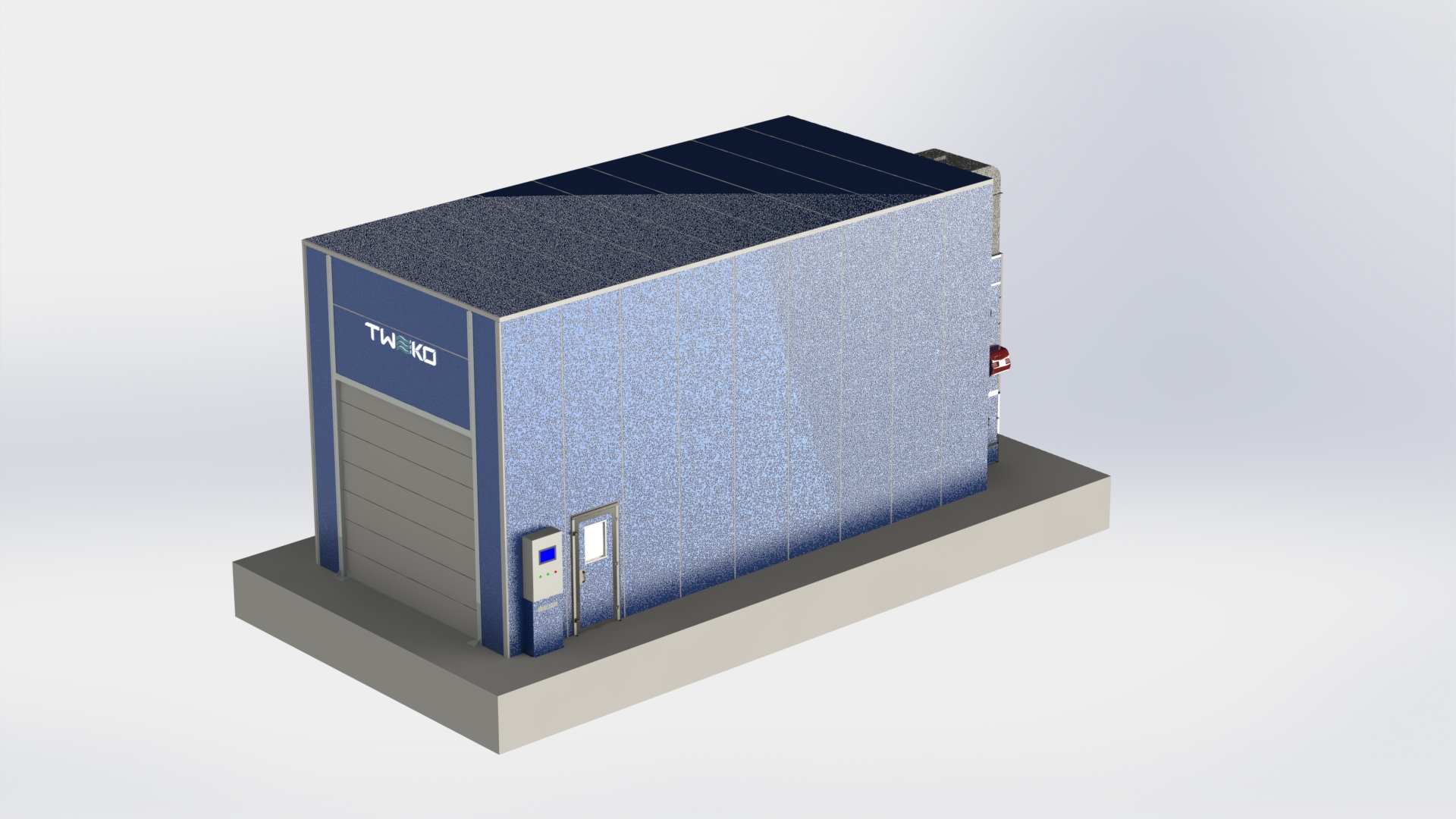 В конце октября были изготовлены сэндвич-панели и система воздуховодов, выполнена поставка на объект в полном объёме. Компания TWEKO организовала подведение электроснабжения и сжатого воздуха к соответствующим точкам, адаптировав камеру к условиям объекта. Монтаж и пусконаладочные работы проведены специалистами TWEKO с привлечением крана и погрузчика, предоставленных заказчиком. Камера была защищена плёнкой до установки навеса. После завершения работ TWEKO провела обучение для трёх операторов, выдала сертификаты и предоставила гарантийное обслуживание на 12 месяцев. Камера введена в эксплуатацию согласно графику.