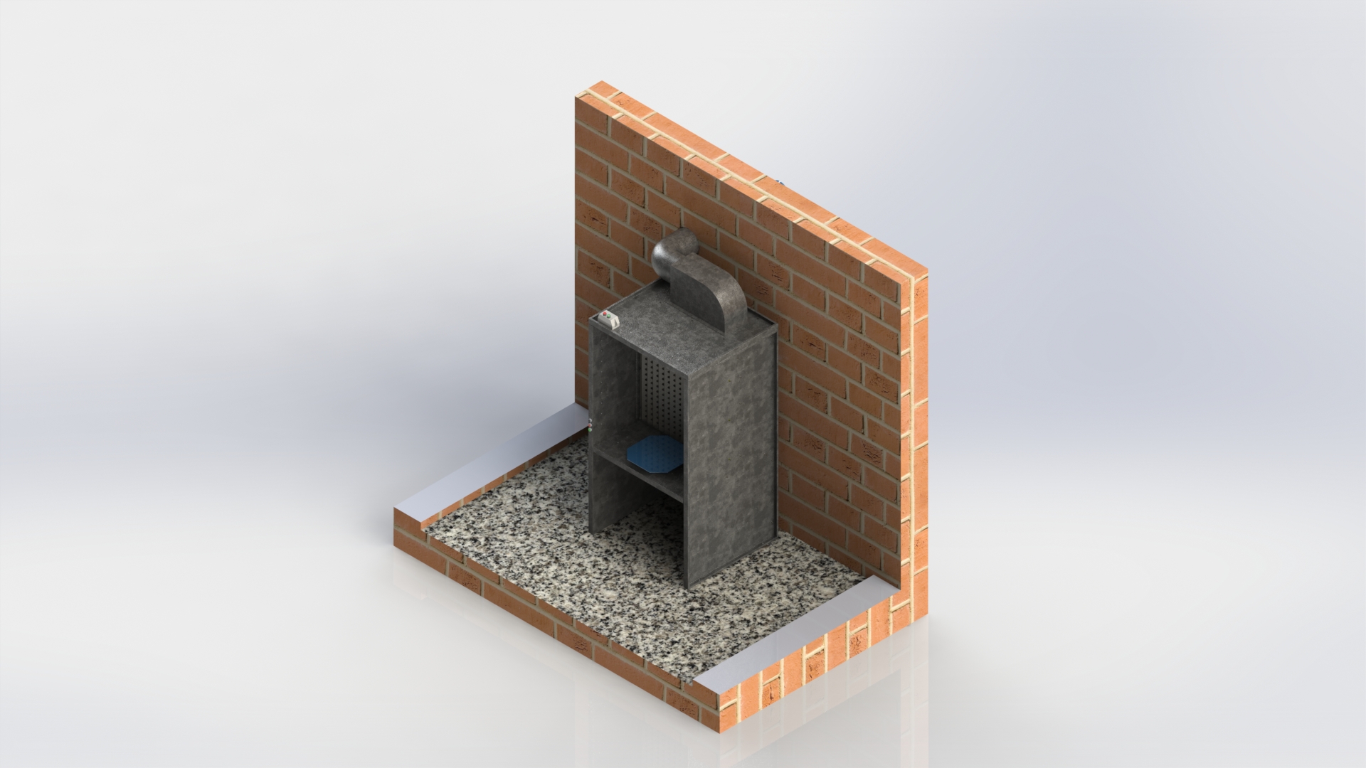 Работы начались после анализа условий помещения и согласования визуализации в том же месяце. Проектная документация включала чертежи камеры, верхней панели и уголка для частотного преобразователя.