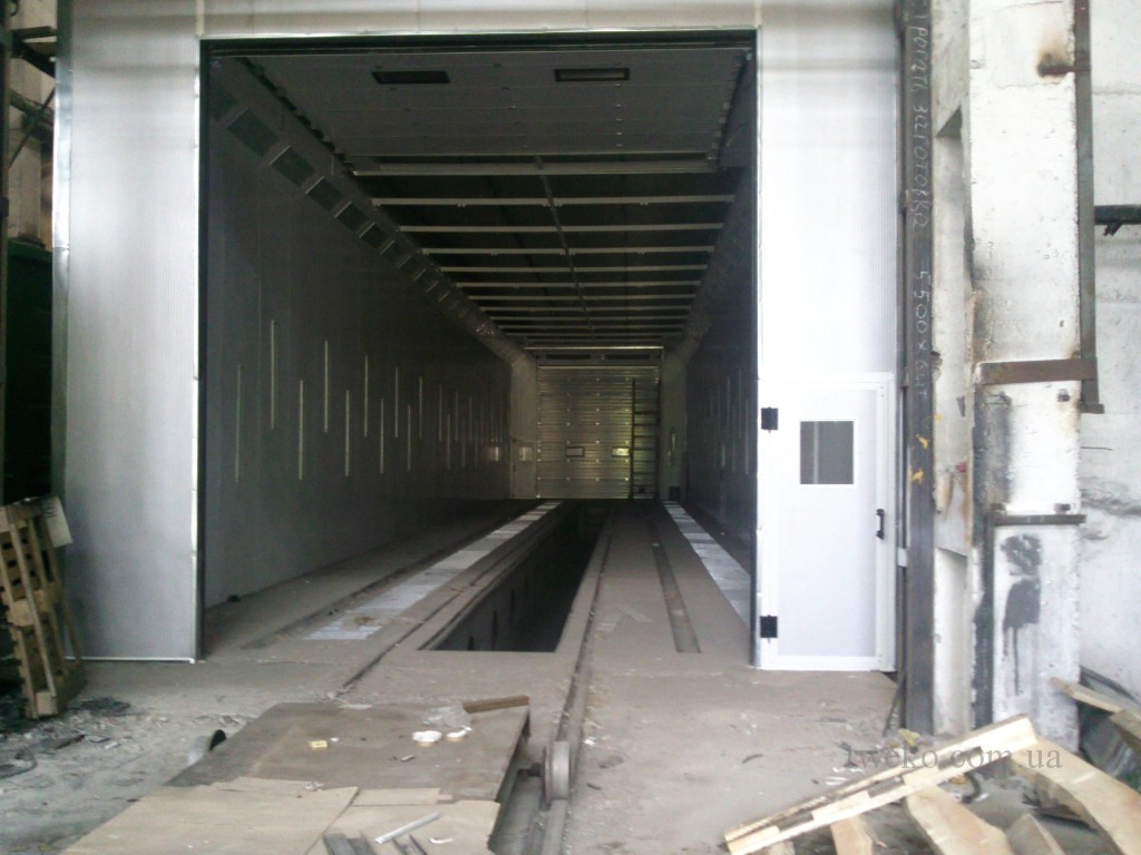 Покрасочно-сушильный комплекс, разработанный как оборудование для покраски железнодорожного транспорта, состоит из двух последовательно соединенных герметичных камер общими размерами 36 000 × 5000 × 6000 мм, предназначенных для нанесения и сушки лакокрасочных материалов (ЛКМ) на грузовые вагоны или другие крупногабаритные изделия, не превышающие эти габариты.