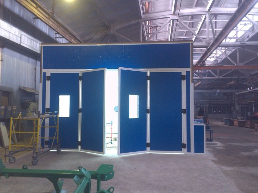 Покрасочная камера для тракторов — малярный комплекс предназначенный для нанесения и высушивания лакокрасочного покрытия на поверхность деталей и узлов сельскохозяйственной техники. Данный комплекс разработан и изготовлен нами специально для ООО «Белоцерковмаз», в 2013 году.