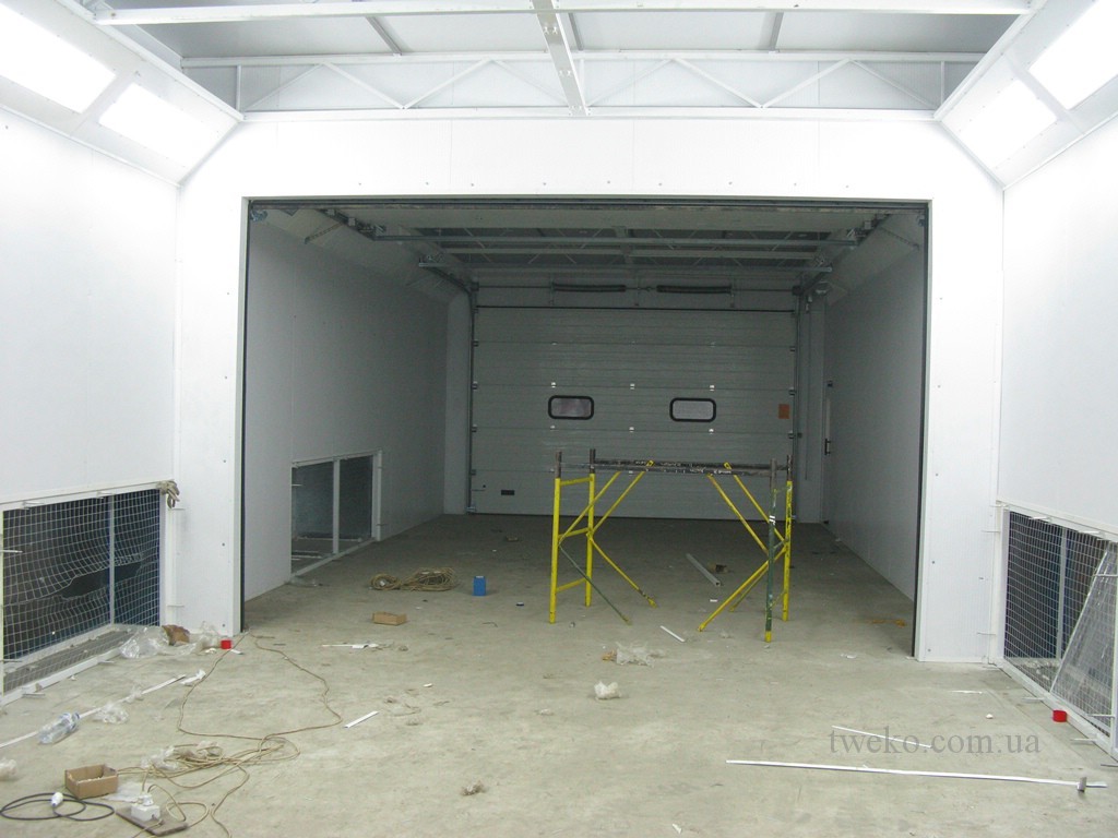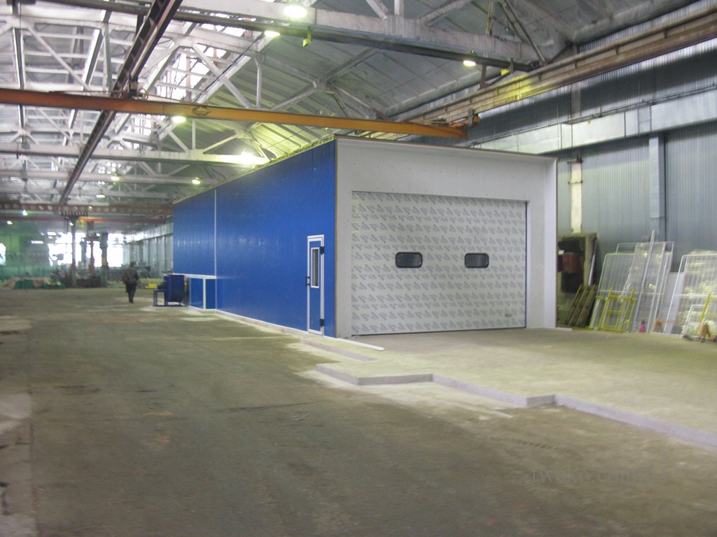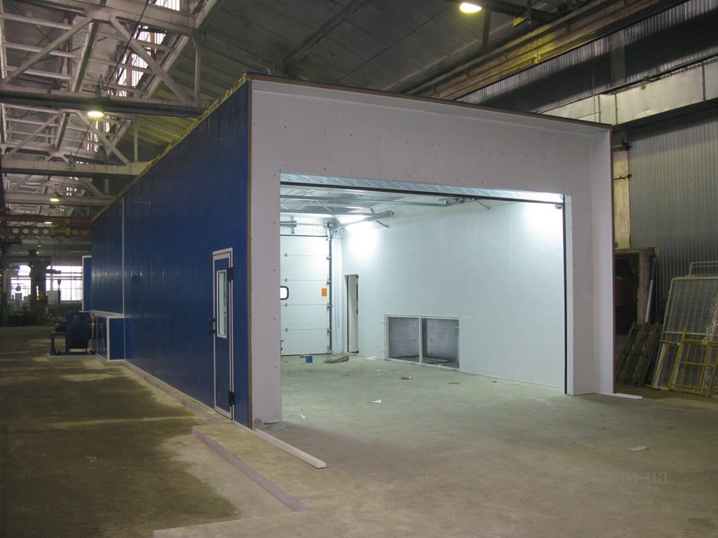 1.1. Кабина комплекса выполнена из металлических теплоизолирующих сэндвич-панелей с пожаробезопасным наполнителем, и гальваническим двухслойным полимерным покрытием, состоящим из слоя цинка толщиной 275мг/м2 и слоя полимерного покрытия. Панели устойчивы к высоким температурам (до 180 °С). Кабина имеет две рабочие зоны: 1 зона вентилирования и 2-зона окончательной осушки. Зоны имеют одну общую стенку в которой смонтированы сдвижные двери для непосредственной загрузки изделий на сушку из зоны вентиляции и трехстворчатые распашные ворота в каждой зоне комплекса.