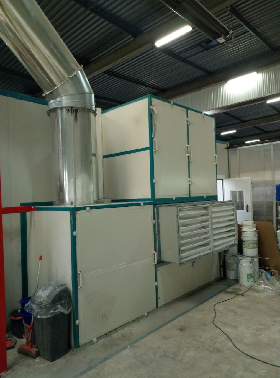 Первым этапом реконструкции стала модернизация существующей окрасочной камеры. Нами был поставлен комплект оборудования для улучшения систем вентиляции и фильтрации воздуха. Также была необходима модернизация освещения в камере. Комплект стеновых и потолочных светильников, а также сервисные двери добавили к заказу. Данный комплекс оборудования позволил: