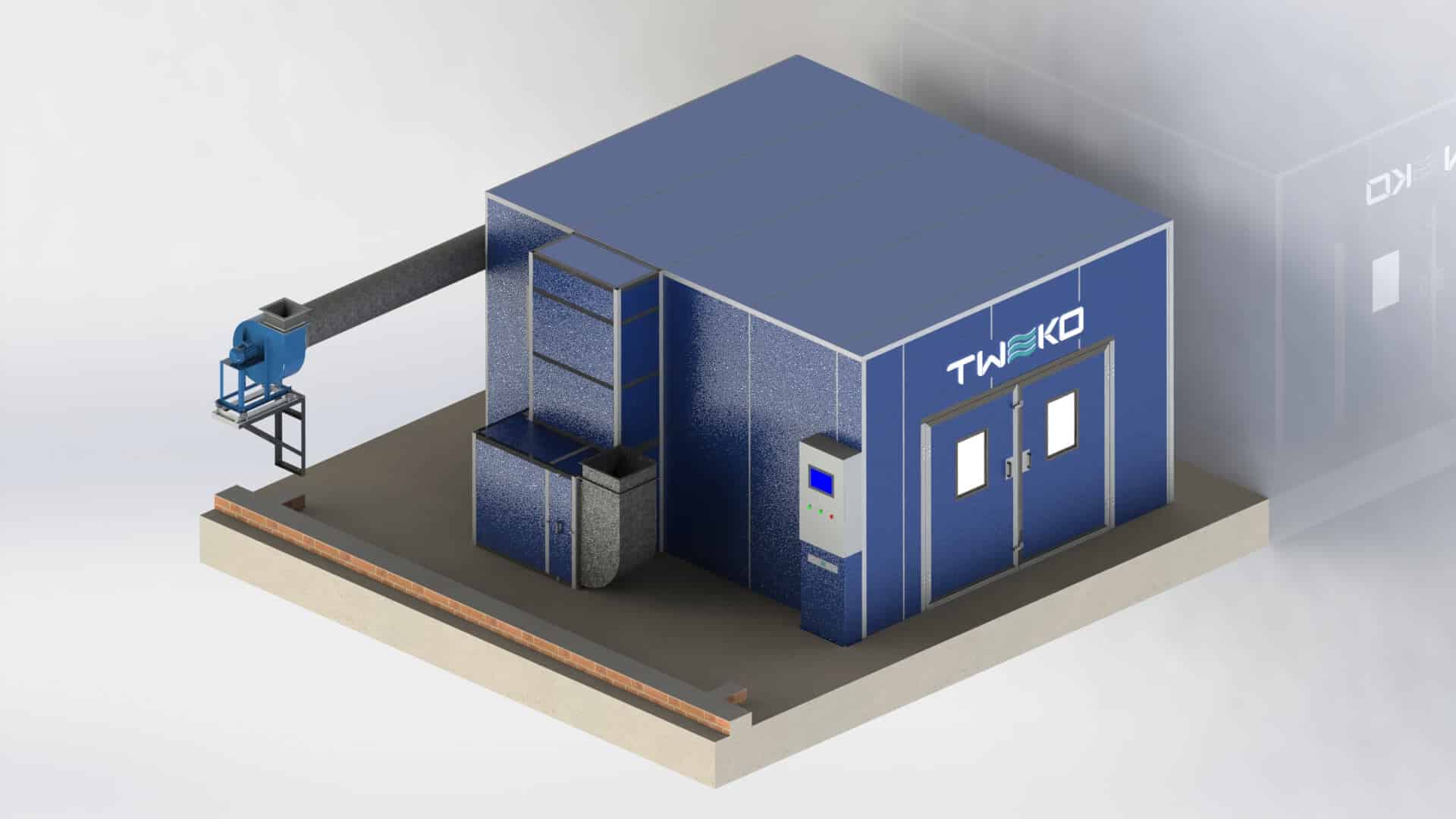 Покрасочная камера серии KF от TWEKO — это универсальное оборудование, предназначенное для эффективного окрашивания и сушки различных изделий. Она обеспечивает полный цикл обработки: от нанесения лакокрасочных материалов до их высыхания, с возможностью настройки температуры и времени в соответствии с требованиями оператора и оснащена интеллектуальным управлением, двухступенчатой системой фильтрации (EU3, эффективность до 96,7%), взрывозащищенным освещением и энергоэффективным теплообменником.