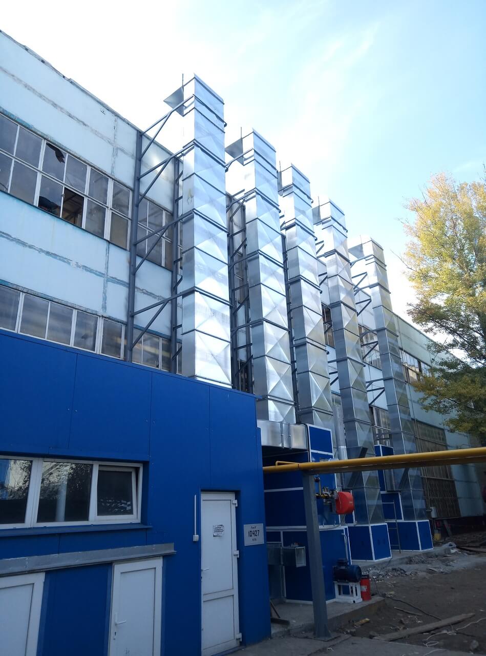 Термовентиляционная система комплекса использует шесть газовых горелок CIB Unigas (Италия, производительность до 300 кВт) и теплообменники из нержавеющей стали для нагрева воздуха. Все термовентиляционные шкафы расположены за пределами помещения, на расстоянии 2,5 м от кабины комплекса. Вентиляция камеры покраски обеспечивает поток 0,3 м/с, а в сушильной зоне частичное обновление воздуха (10–15%) гарантирует безопасность и энергоэффективность.