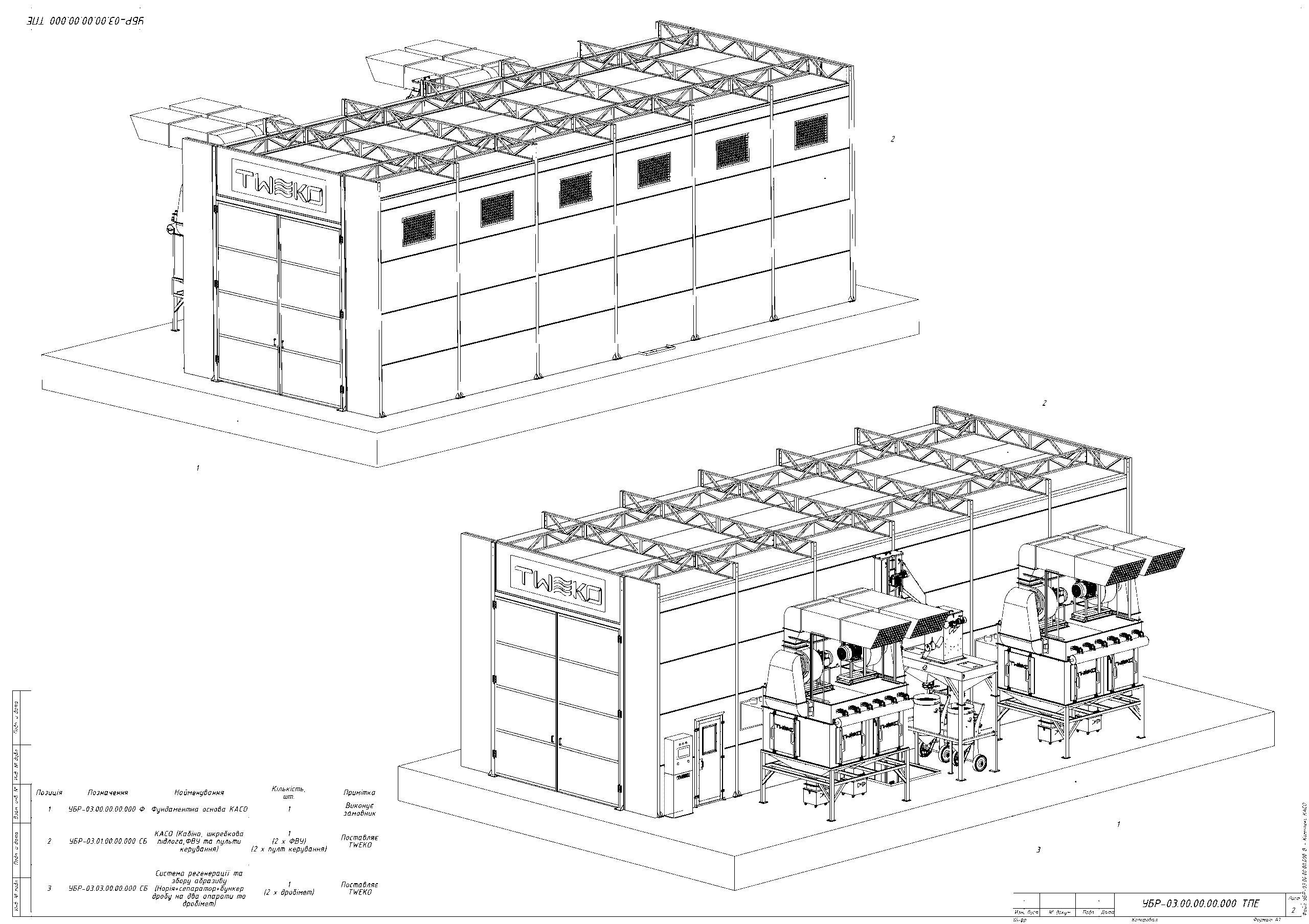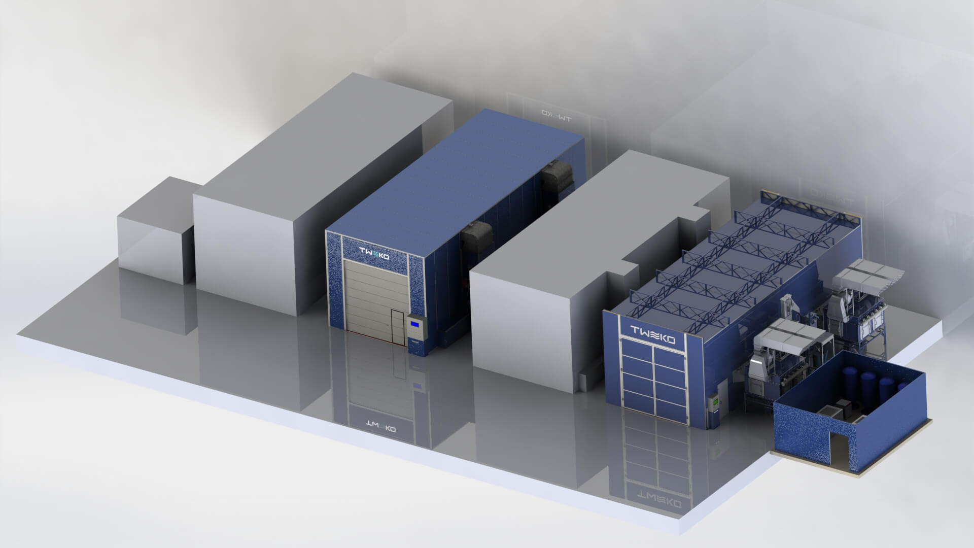 Для обеспечения полного цикла подготовки поверхности и нанесения покрытий компанией TWEKO было реализовано комплексное технологическое решение, включающее камеру абразивоструйной очистки, окрасочно-сушильную камеру проходного типа, а также вспомогательные инженерные и технологические системы, интегрированные в единый производственный процесс.