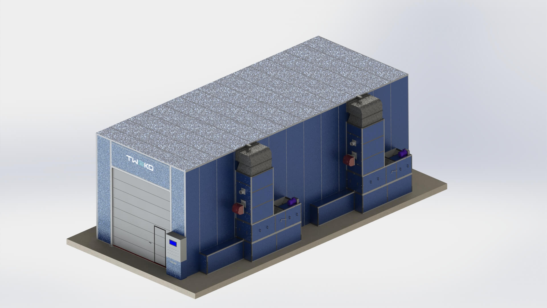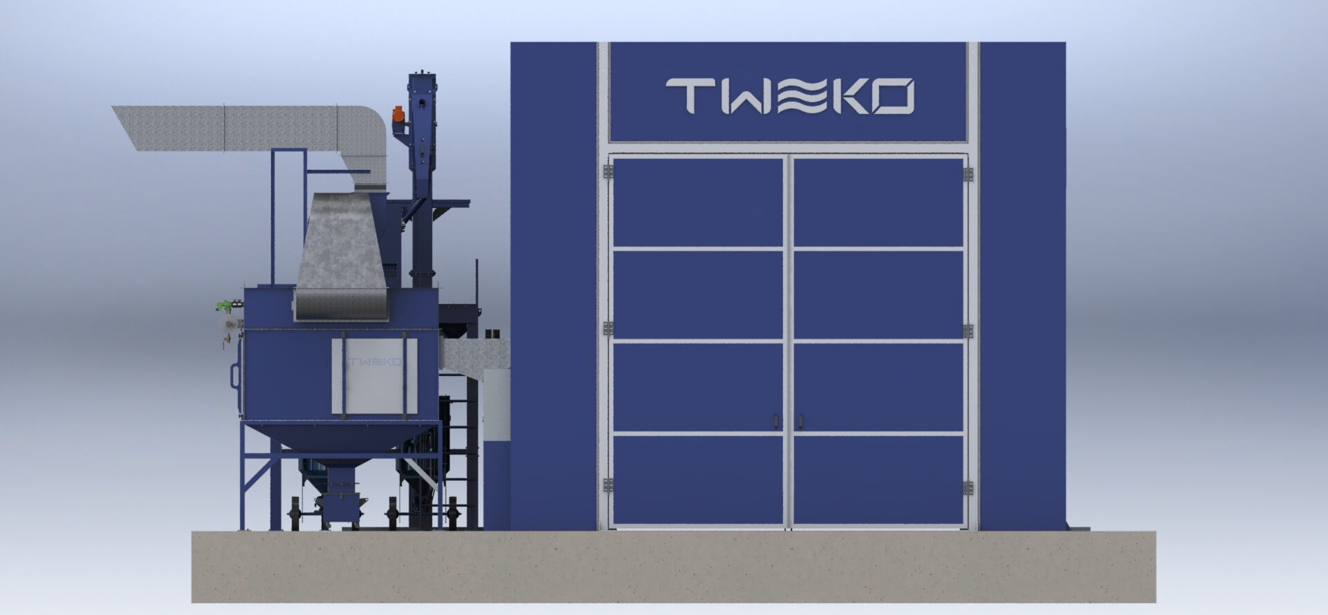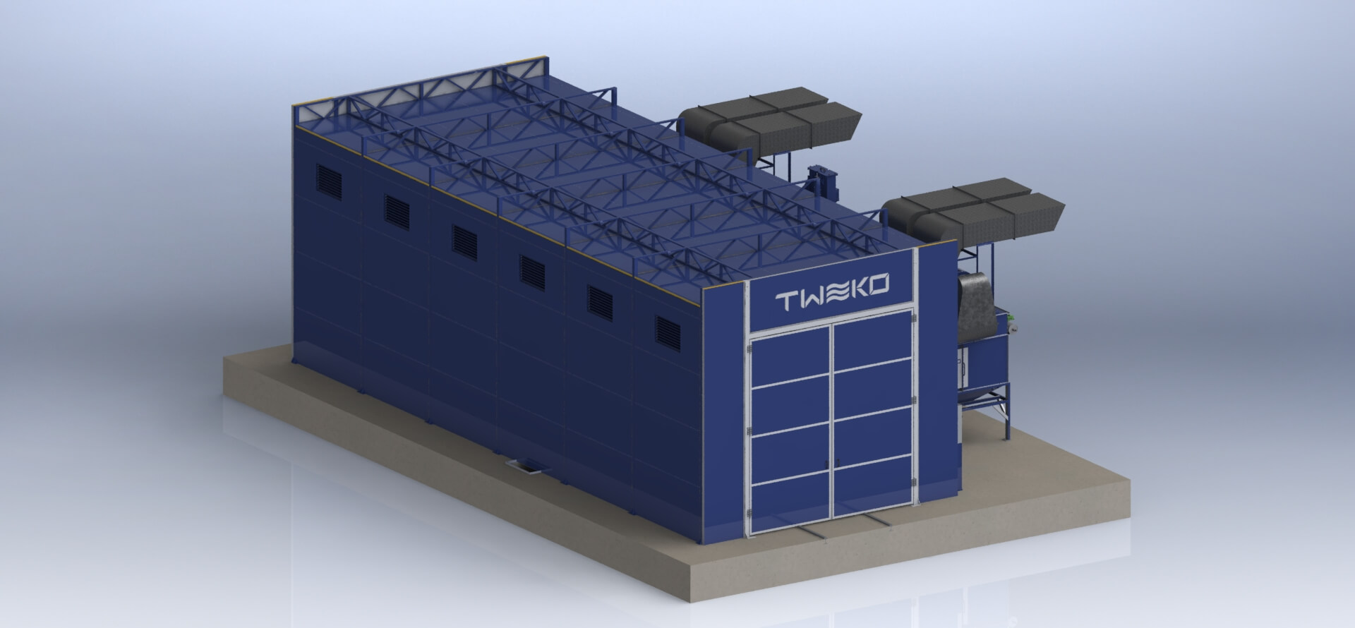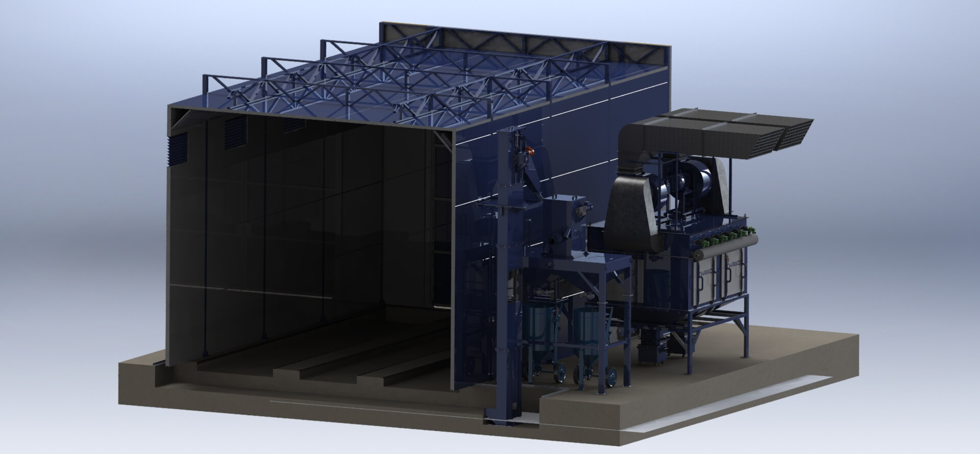 Для обеспечения полного цикла подготовки поверхности и нанесения покрытий компанией TWEKO было реализовано комплексное технологическое решение, включающее камеру абразивоструйной очистки, окрасочно-сушильную камеру проходного типа, а также вспомогательные инженерные и технологические системы, интегрированные в единый производственный процесс.