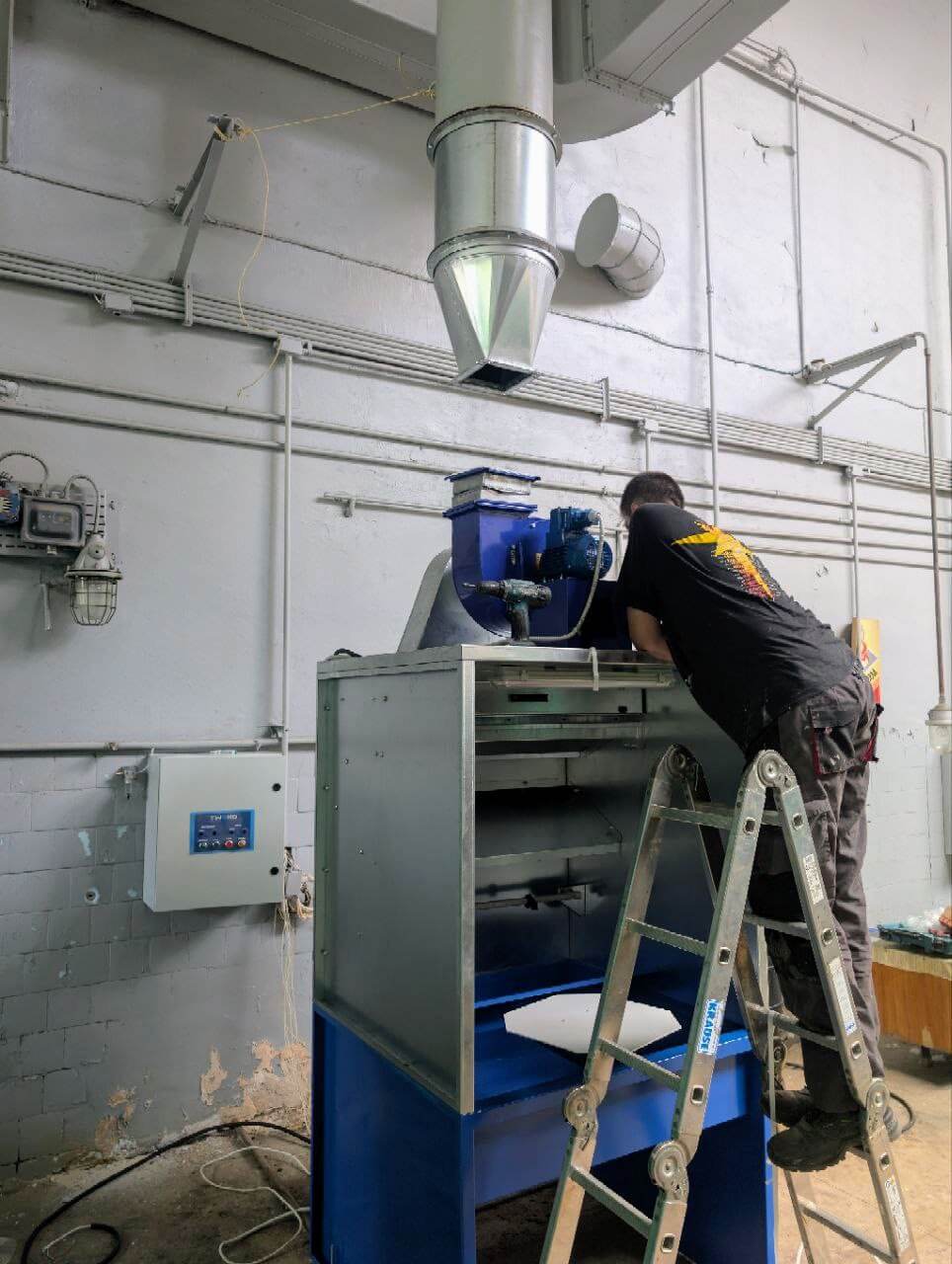 Заказчик утвердил замену старого шкафа с демонтажем старого вентиля. TWEKO адаптировала оборудование к существующим коммуникациям: воздуховоду, канализации и водоснабжению. Линия подачи воды была расположена под кронштейном с форсунками для исключения затопления. Несмотря на некоторые сложности с расположением ввода воды и загрязнением воздуховода, команда TWEKO оперативно переместила шланг, очистила вентилятор и установила зонт (грибок) на вытяжку. Монтаж был успешно завершён, а пусконаладка позволила досрочно ввести оборудование в эксплуатацию.